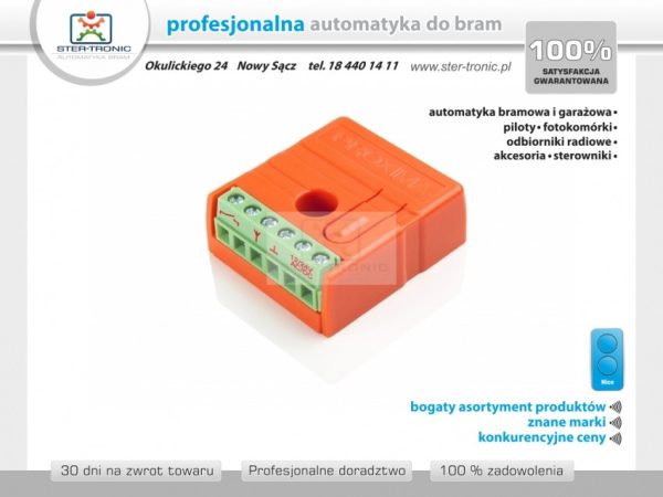 Ricevitore universale con memoria massima di 31 telecomandi. Possibilità di programmare combinazioni di tasti del telecomando sul canale. Funziona con telecomandi FLOR (tutti i codici variabili analizzati) + inoltre è possibile programmare telecomandi di altri produttori. Il controller può funzionare con i telecomandi dei seguenti produttori (la parte costante analizzata del codice del telecomando): Nice Smilo, FAAC Rc, Beninca, Came Space, Wiśniowski, Elmes, Gorke, DTM System, BFT, Key, Inel, Solo , Tousek e molti altri.
